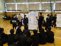 2年生はポスターだけでなく自分たちの取り組んだ成果物や、より分かりやすく伝えるための工夫を凝らし、精一杯発表し、聴講する1年生たちも質問をするなど、活発にポスターセッションが行われていました。